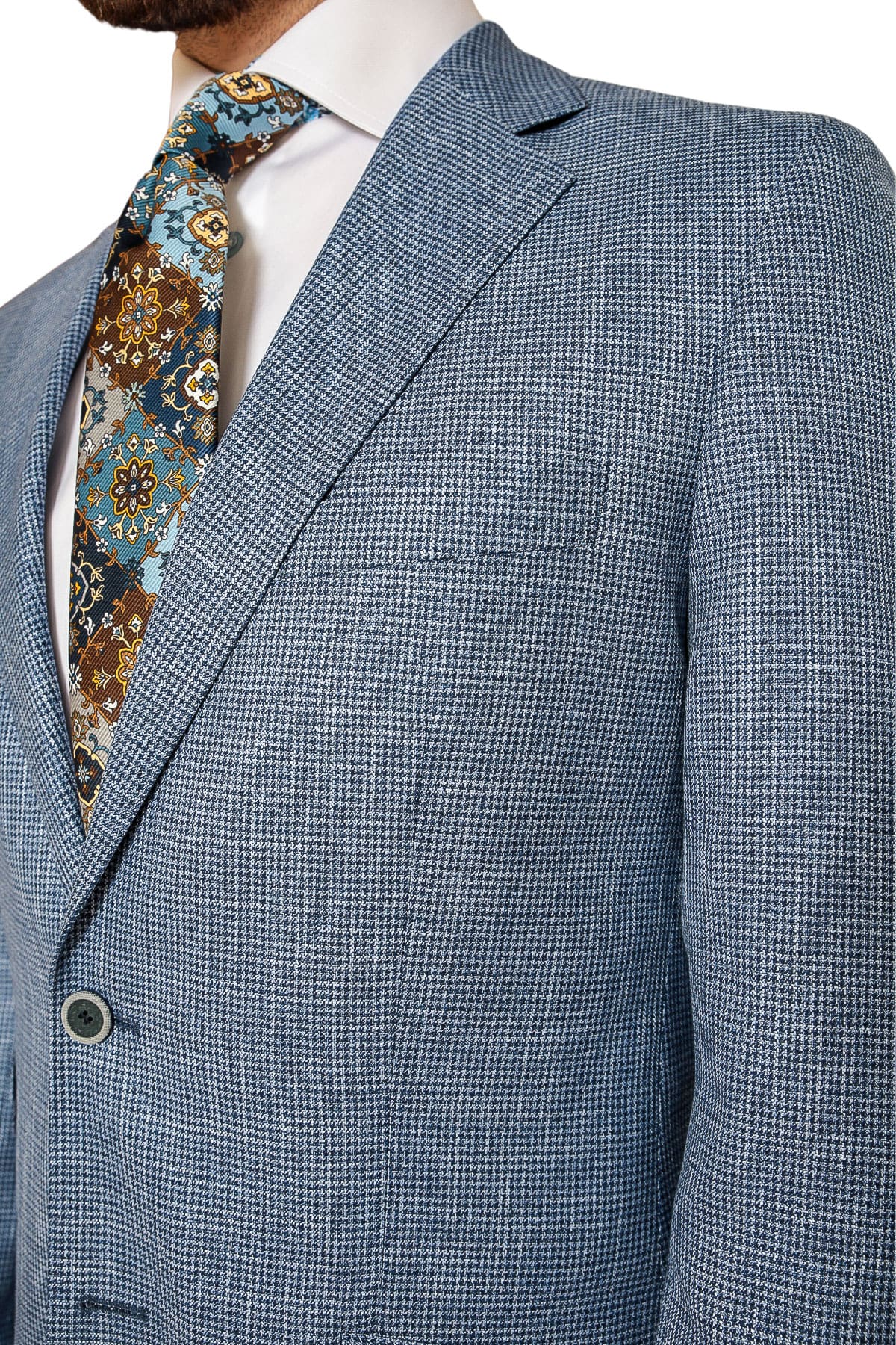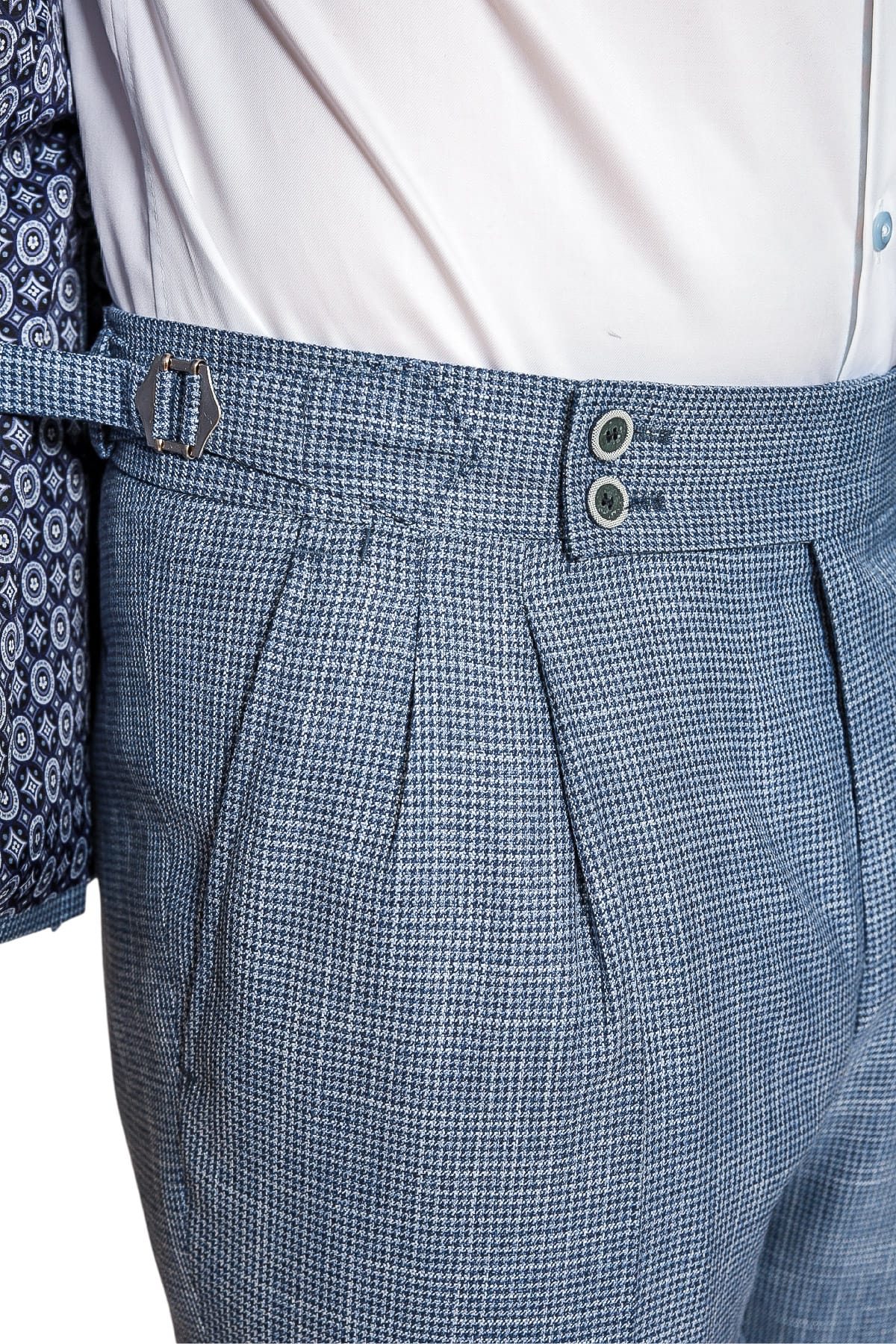 Valmistatud spetsiaalselt valitud luksuslikust Itaalia kangast. Pintsakul on pehme konstruktsioon ja õhuke naturaalne õlg. Napoli stiilis püksid on topeltvoltidega ja küljelt reguleeritavad.