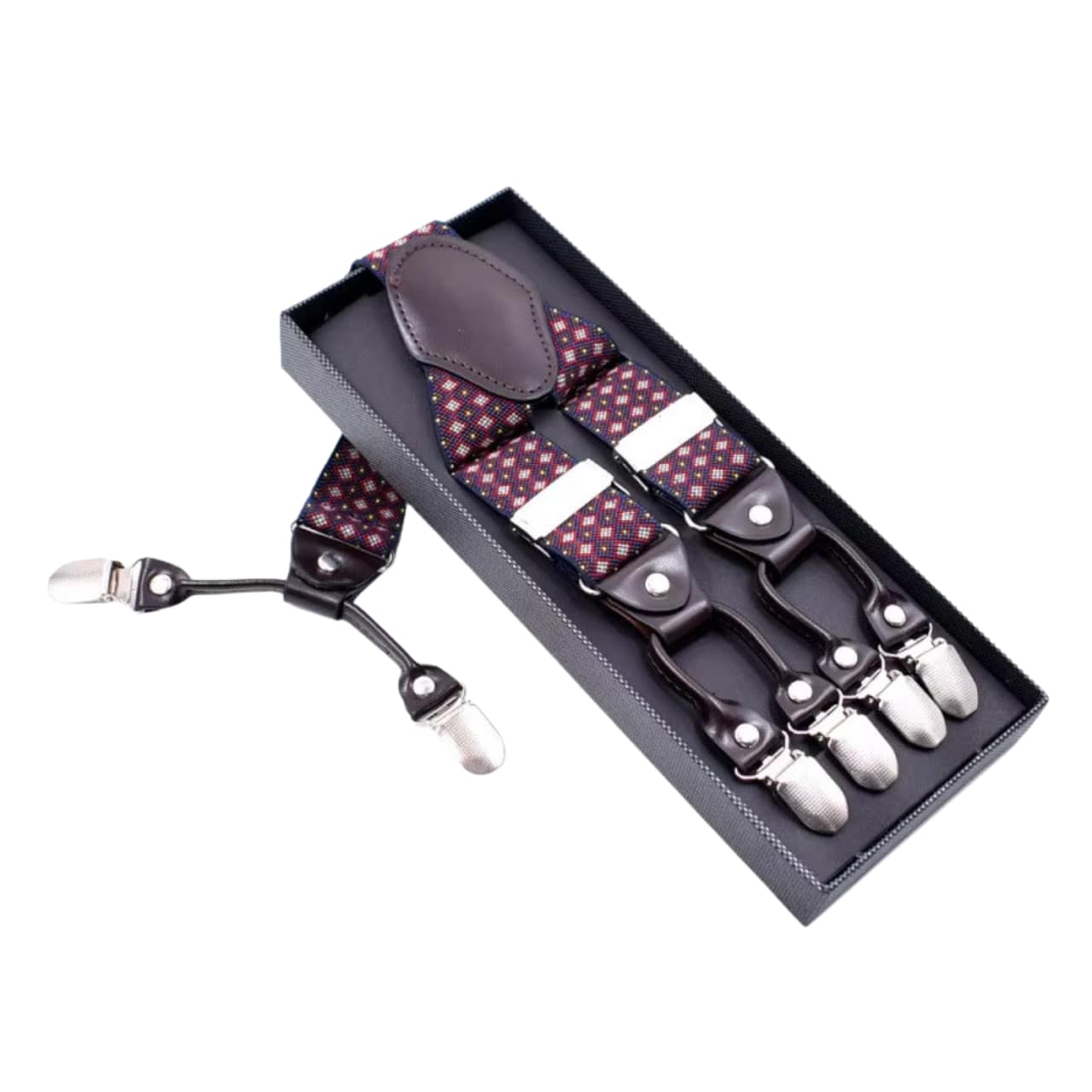 Need punased ja sinised mustrilised traksid on kindlasti üks toode millega silma paista. Y-kujuline tagatükk hoiab rihmad keskendatud ja stabiilsena ning metallist liugurid võimaldavad pikkust reguleerida eri särgipaksuste korral. Nööbrisilmadega sulgur asetseb madalal ja korrastatult, sobides hästi erinevate pükste stiilidega.