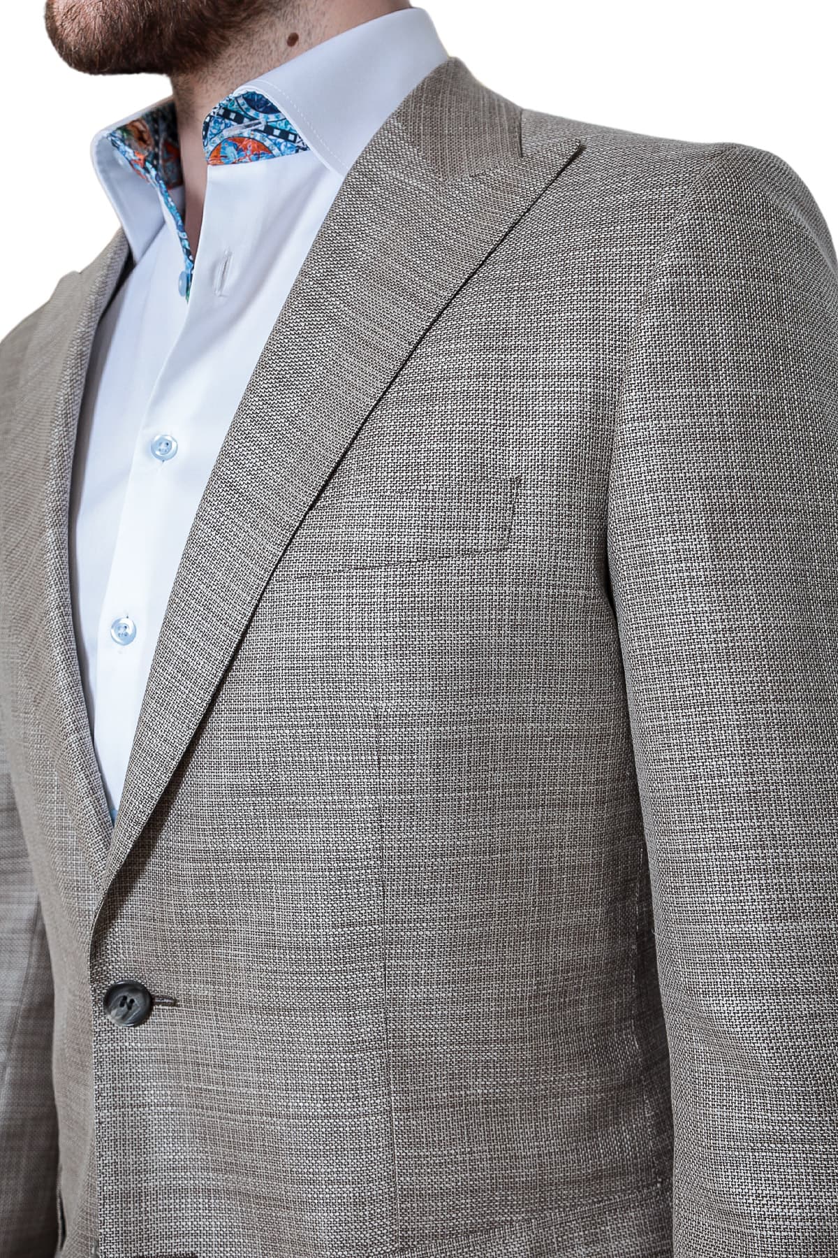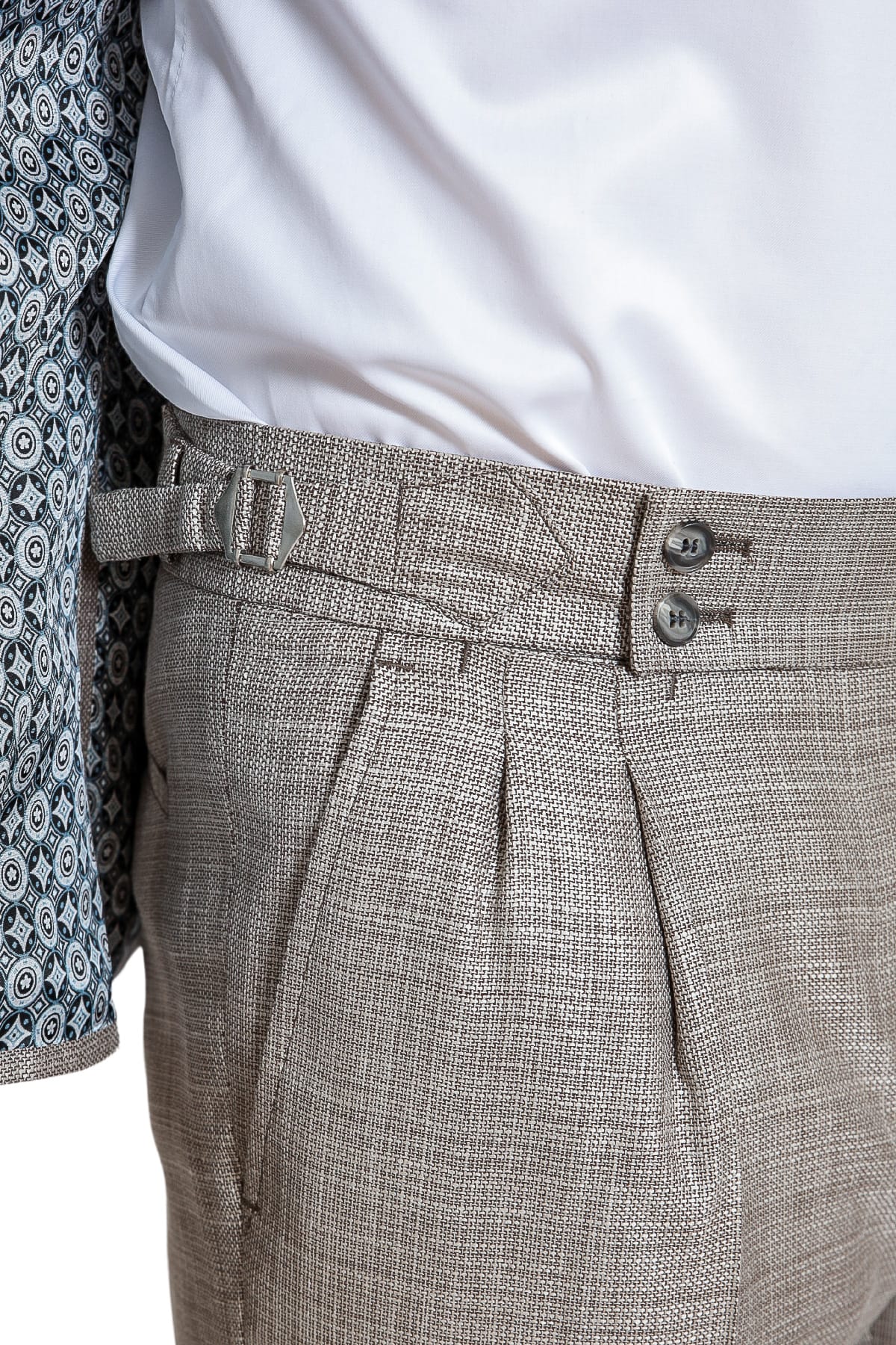 Run the tape from your trouser waist to where you would like your trousers to end. To ensure the best fit, our suit trouser lengths are unfinished and require alteration. Please provide your trouser length measurement (in the order notes at checkout) for us to make the trousers correct length.