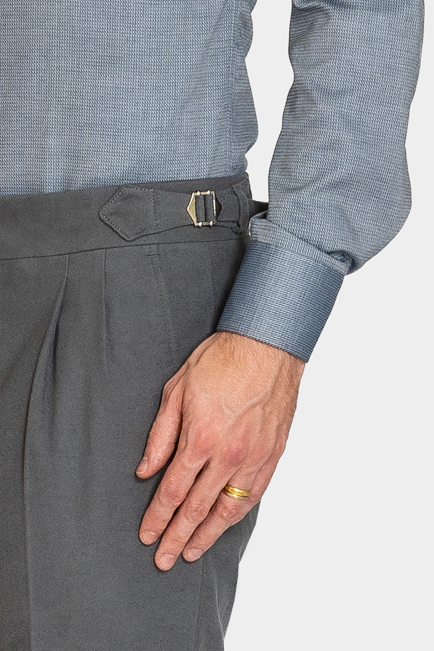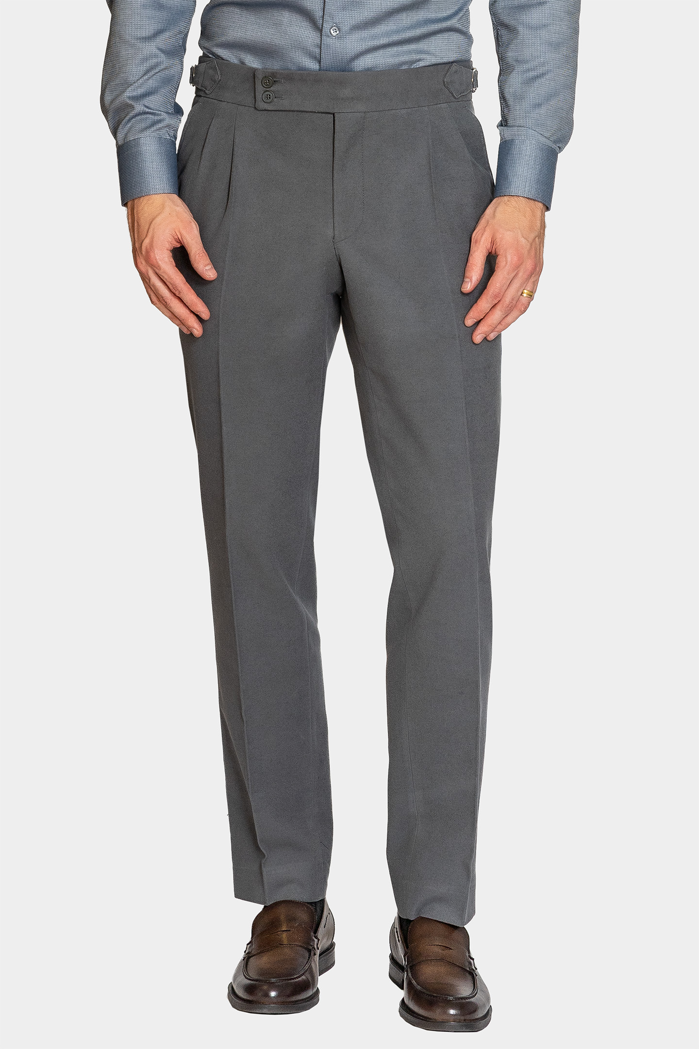 Pay in three equal instalments 3 x €83.00The Alfie Grey Pleated Trousers bring effortless refinement to everyday tailoring. Featuring front pleats and elegant side adjusters instead of a belt, they offer a clean and balanced silhouette. Crafted from 100% soft cotton, the fabric provides natural breathability and comfort, making these trousers ideal for both business and leisure. A timeless design that pairs perfectly with a crisp shirt or lightweight knitwear.