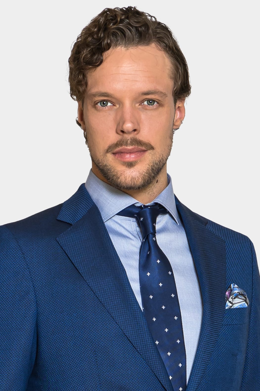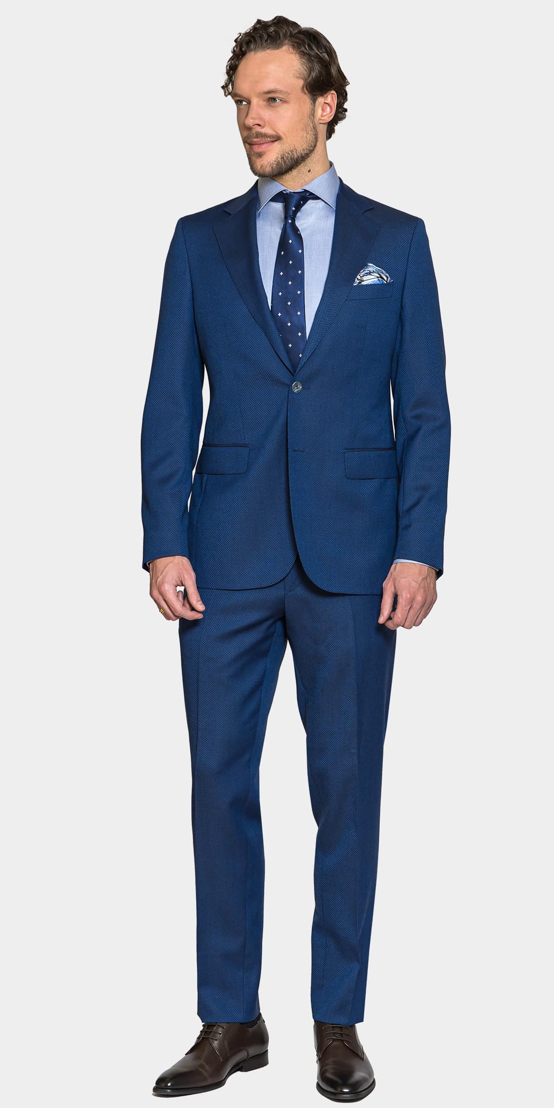 The Bolzano Navy Suit combines sophistication and Italian craftsmanship, tailored from luxurious Super 130’s wool. Woven by Drago in Italy, this suit offers a clean and modern silhouette in a classic navy hue. Featuring a natural-shoulder jacket with wide notch lapels and mid-rise flat-front trousers, it’s the perfect ensemble for polished and elegant occasions.