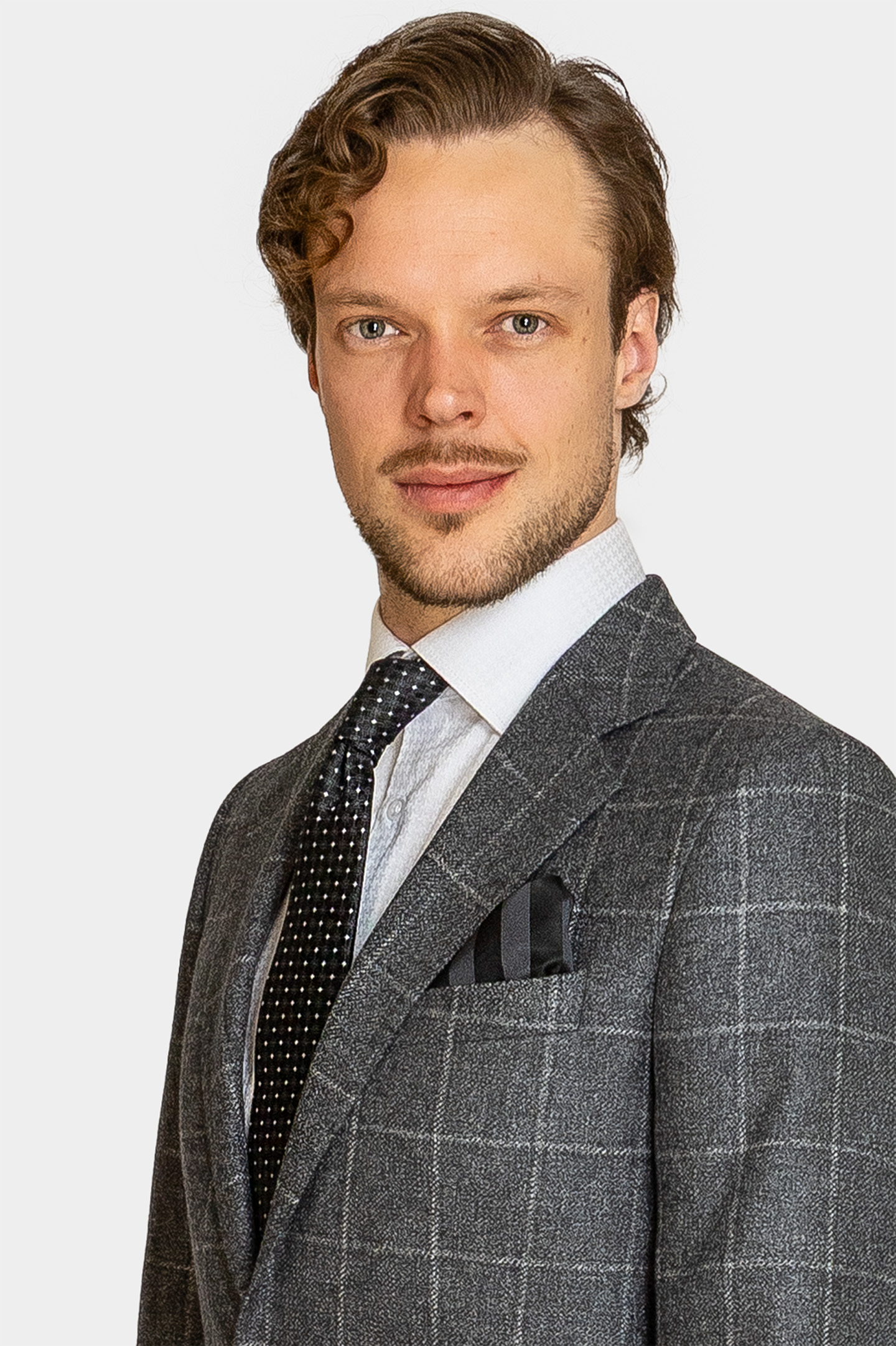 The subtle grey check pattern adds depth and texture, making it ideal for both business and social occasions.