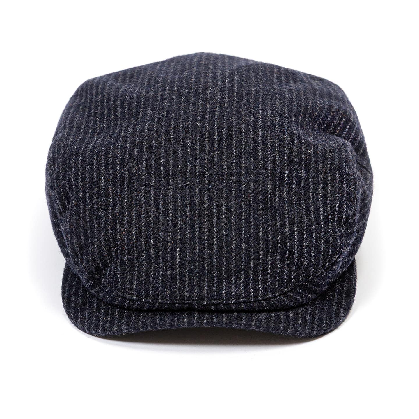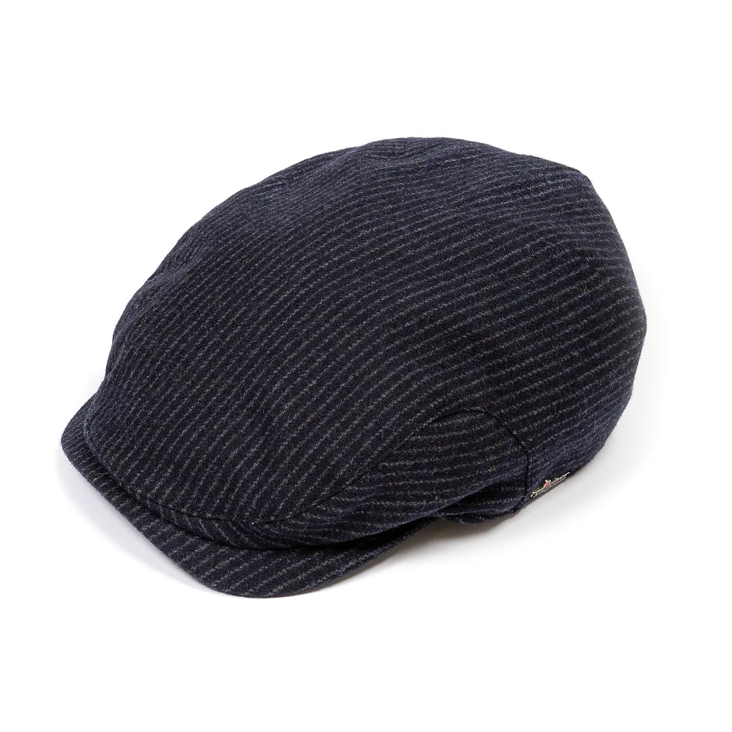 Its fine stripe pattern adds structure to the classic flat cap form, while pure wool construction provides warmth and durability for winter wear.