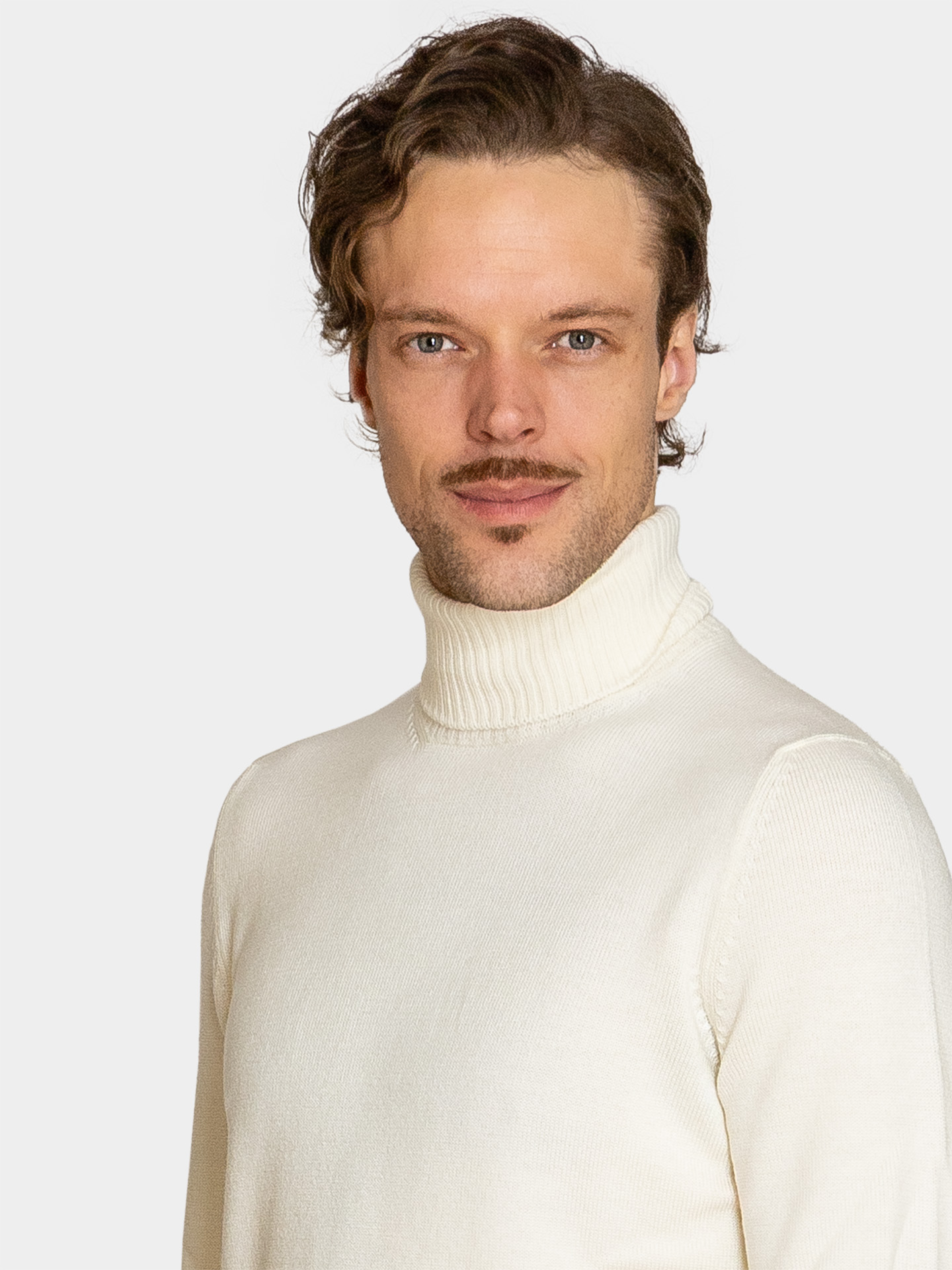 Pay in three equal instalments 3 x €83.00A winter basic that easily pairs with any tailored jacket or stands out on its own, this off white turtleneck is a wardrobe essential bringing warmth and enduring style to any seasonal look. Its 100% Merino wool composition makes it naturally soft, breathable and smooth to the touch – a comfortable piece of clothing that is very much a joy to wear.