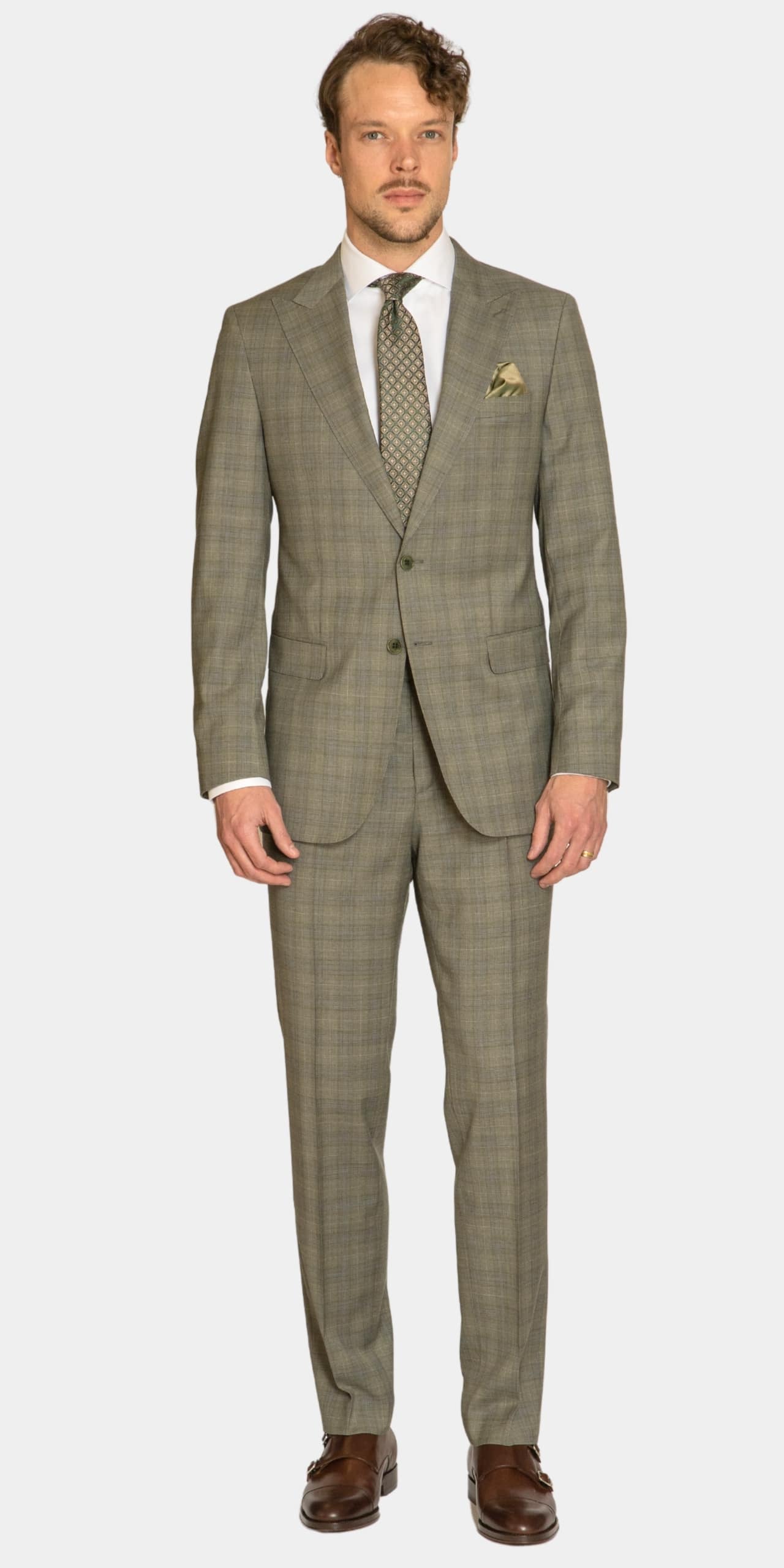 Pay in three equal instalments 3 x €216.33Pienza Sage Check Suit is a sophisticated choice for the man who appreciates the nuances of colour. Executed in 100% pure wool, it offers a “chameleon” aesthetic—appearing as a classic grey in low light and revealing its rich, forest-undertones and intricate check pattern in the daylight. The base is a muted, “sage-meets-charcoal” grey that feels organic and grounded. The check pattern provides a layer of heritage charm, breaking up the silhouette and adding a sense of bespoke craftsmanship. Definitely for a grounded gentleman
